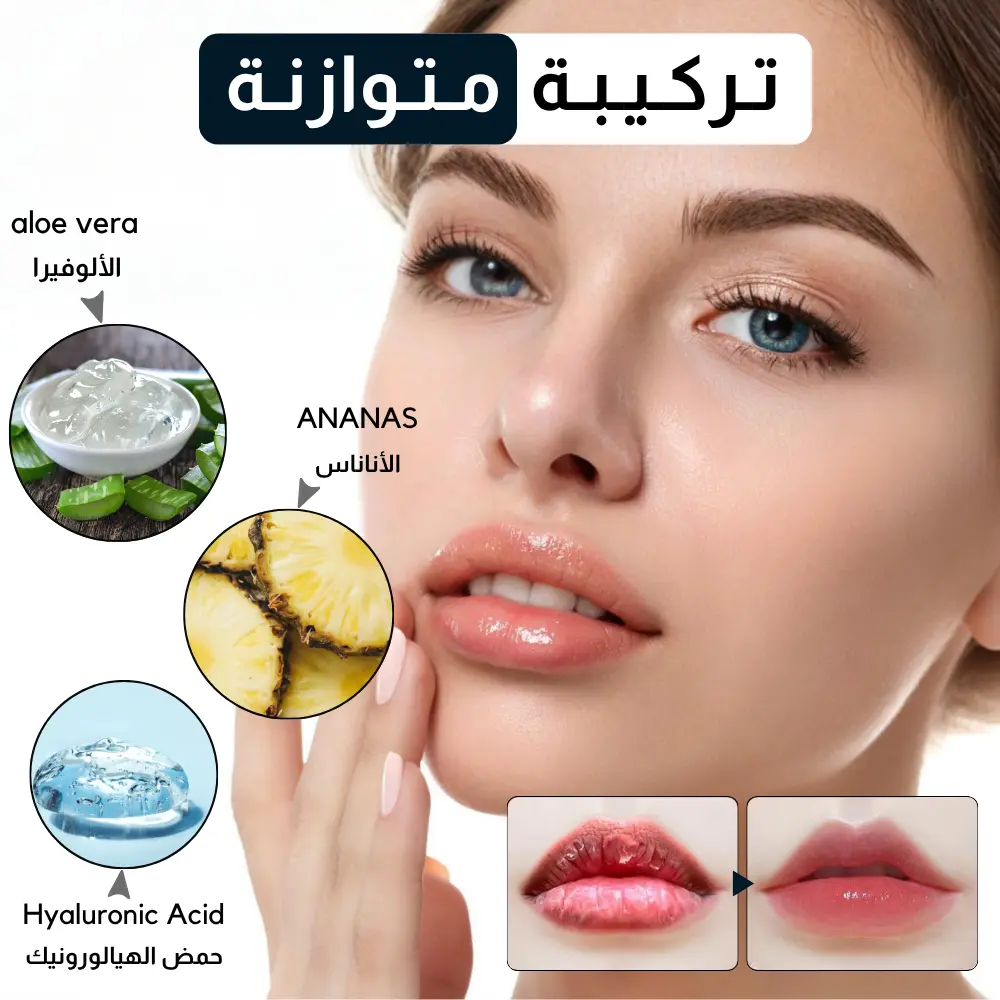 تـركـيـبـة غـنـيّـة بـحـمـض الـهـيـالـورونـيـك وخـلاصـة الأنـانـاس تـنـعـش شـفـاتـك مـن أول اسـتـخـدام